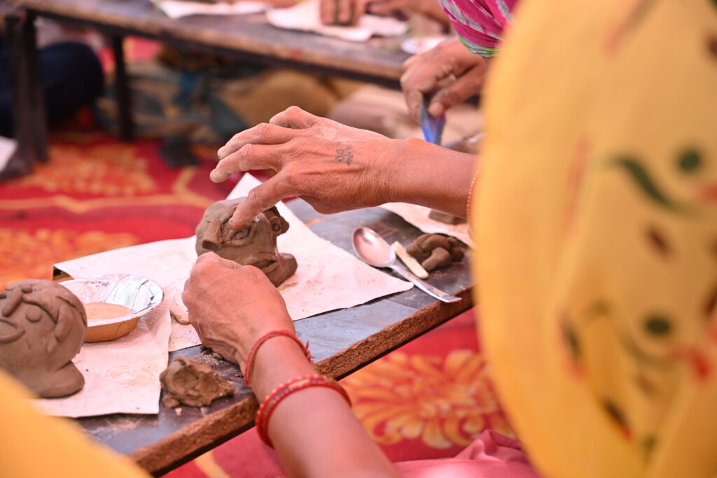 At one corner, a toy maker from Rajasthan showed children how to create their own toys. Elsewhere, children sat listening to stories, or dipped their hands into clay, shaping and reshaping with quiet concentration. Some ran freely, inventing their own games in between.