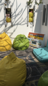 There were families walking around, kids playing at many pretend play stalls and walk through experiences from popular books like The Tiger Came to Tea and Gajapati Kulapati, stalls selling books, blocks, and balance boards. There were experiences set up like science labs to test the quality of milk as well as see and touch worms from a vermicompost bin. There toys and books that invite parents and children to slow down and connect and publishers who publish books by children. There was a reading nook and a tree dedicated to poems strung by children. Spaces and experiences curated by pre-schools, schools, non-profits, market players, influencers, authors, artists, and musicians. An open air amphitheater with workshops, performances and readings for children, parents and educators. Children and childhood, the common thread. But inside one of the quieter halls, a group of speakers gathered, each bringing stories from different corners of early childhood.