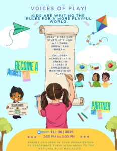 The hope is that this manifesto will not be just a document, but the spark that ignites a national movement. A movement that recognises and acknowledges the critical importance of play in a child’s life. A movement that works to ensure that every child has access to safe, inclusive, and joyful spaces to play.