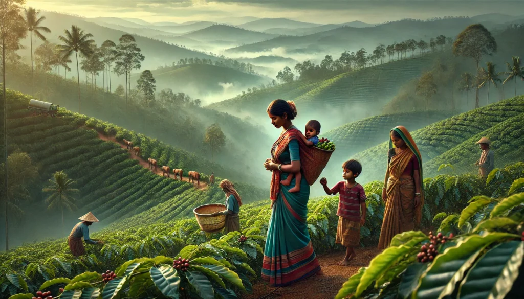 In Coorg, where coffee shrubs stretch endlessly across the hills, caregiving is not a task—it is a way of life, stitched into every fold of the landscape. It begins before dawn, often before the first light seeps through the misty valleys. Leela, like many others on the estate, ties her youngest child onto her back with an old, soft sari. Her older son, barely five, tags along, his tiny hands brushing the leaves as he trails behind, always watching, always learning.
