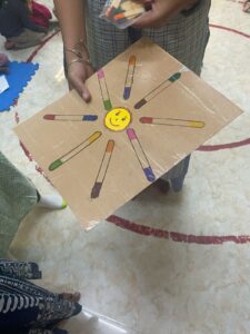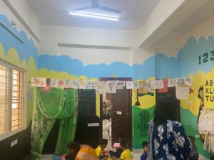 There is a rhythm to how the space functions. Children identify their own name tags and wear them. There’s circle time, where they sing with actions. There’s a toy library — families borrow toys for about a week. “The very poor hesitate,” Ghousia says. “They’re afraid of breaking the toys.”