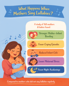These findings point to lullabies as a regulating experience, helping babies settle into rhythms of rest and comfort.